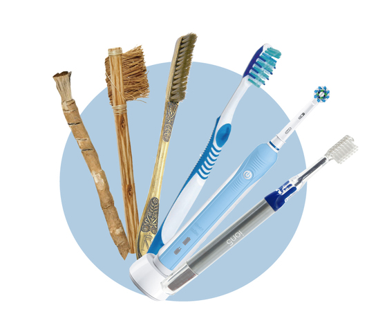 Los egipcios usaban pequeñas ramas del tamaño de un lápiz con puntas desgastadas (como escobillas) a las que llamaban “palos” o “varas para masticar”. Se frotaban contra los dientes sin ningún abrasivo adicional como la pasta de dientes.
