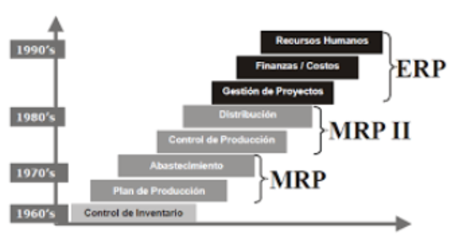 MRP y MRPII insuficientes para la demanda mundial, nace el ERP que controla todas las áreas de una empresa bajo un solo y transparente sistema de información.