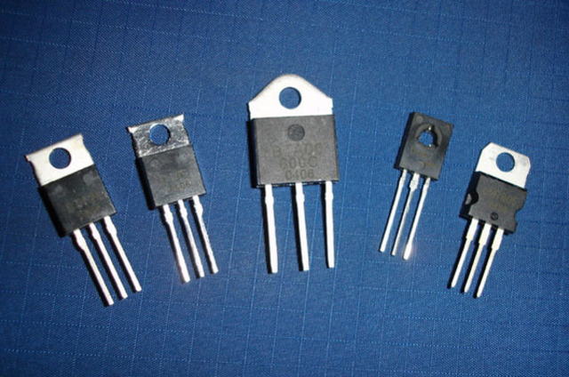 Se puede observar aquí cómo se llenaba la cápsula metálica con un plástico epoxi, en el que quedaba sumergido el transistor. Se nota también que el montaje tenía una cuarta pata, que luego se cortaba al ras.