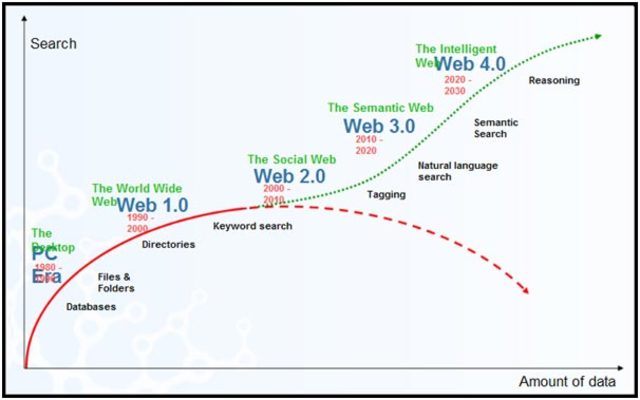Evolución usuario Web By vbarriosc Dec 31, 1980 Era del PC [1980 - 1900] Bases de Datos Archivos y Carpetas Dec 31, 1990 Web 1.0 - The World Wide Web [1990 - 2000] Directorios Dec 31, 2000 Web 2.0 - The Social Web [2000 - 2010] Búsquedas por Palabras Clave Dec 31, 2010 Web 3.0 - The Semantic Web [2010 - 2020] Etiquetas - Tagging Búsquedas usando Lenguaje Natural Dec 31, 2020 Web 4.0 - The Intelligent Web [2020 - 2030] Búsqueda Semántica Razonamiento - Reasoning