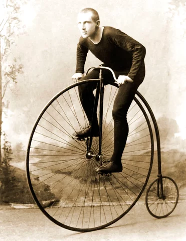 Penny Farthing bicycle invented It was unstable, extremely difficult to get on and off and the front wheel was used for power and steering. -