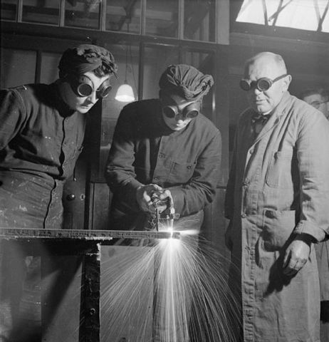During WWII, older men had to enter the work force in place of those who had been called up to war. This created a great need for training and eventaually gave birth to the Job Instructor Program (JIT), essentially a train the trainer program (Estep, 2008). Image retrieved from Wiki Commons. (1941-1945). https://upload.wikimedia.org/wikipedia/commons/7/75/%22VETERANS%2C_EARN_WHILE_YOU_LEARN_THROUGH_ON_THE_JOB_TRAINING%22_-_NARA_-_515966.jpg