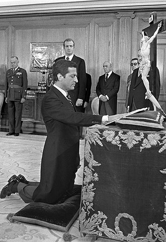 SUCESOR DE ALFONSO SUÁREZ. Leopoldo Calvo Sotelo juró el cargo un 26 de febrero de 1981, en el Palacio de la Zarzuela. Su mandato duró hasta diciembre de 1982, y en el transcurso de su presidencia se hicieron grandes acuerdos por le empleo y España entró en la OTAN.