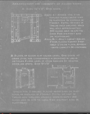 This image illustrates historical context perfectly as it is extremely specific in its measurements. This was written in the middle of World War II, that being said food rationing was crucial to war efforts. Thus, this meticulously measured storage room includes the measurements of what kind of containers can fit and how many of them can fit. For example, pint glass bottles fit 100 bottles in 9 feet when stored 3 to the shelf (8). The detail in this archive exhibits how every bite mattered. -