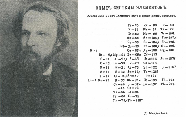 Dimitri Mendelejev avalikustab oma avastused keemiliste elementide perioodilisusest.