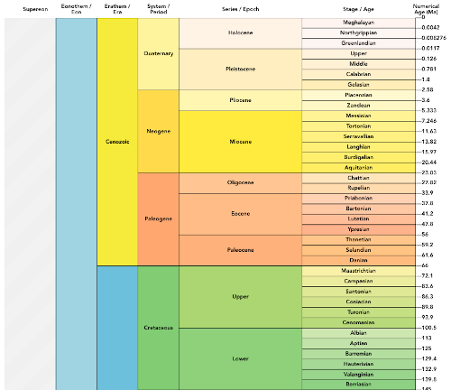 Kestvus 66 mln kuni 23 mln aastat tagasi. Uusaegkonna ehk kainosoikumi esimene periood. Selle ajastu kliima oli algul soe ja niiske, kuid hiljem hakkas see jahenema. Pärast dinosauruste väljasuremist algas lindude ja imetajate kiire evolutsioon. Nad kujunesid suurteks ja liigirikasteks rühmadeks. Vaalade eellased asusid elama tagasi meredesse. Arenesid esimesed primaadid. Kujunesid preeriad ja savannid.