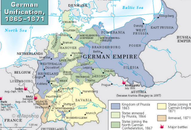 Austria forms and alliance with Bismarck. They took over Schlewig & Holstein from Denmarck.