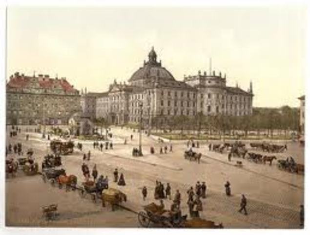 The proclamation of the new German Empire (Reich) was made in the Hall of Mirrors at Versailles, the great palace of the French kings, on 18 January 1871. At this time the city of Paris was still under siege. Bismarck's succesful wars established the leadership of Prussia and of the Prussian king amoin the German states. The victory reinforced the role of the military in Prussian society and encouraged militarism. Even the Liberals voted to give his actions legality.