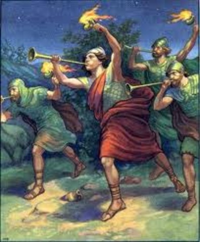 gideon heard a man tell another about his dream, the dream where gideon won the war, and had his men destroy the midianites that night with 300 trumpets...and they did