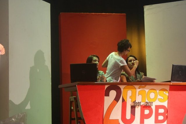 Reunión de producción, a cargo del director del noticiero NOTI20 antes de empezar la grabación.