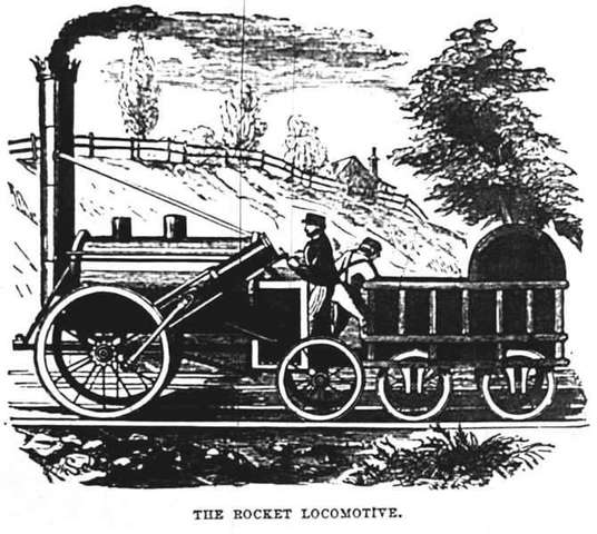 En 1825, George Stephenson construyó la "Locomotion" para la línea entre Stockton y Darlington, al noreste de Inglaterra, que fue la primera locomotora de vapor que arrastró trenes de transporte público. En 1829 también construyó la locomotora The Rocket. El éxito de estas locomotoras llevó a Stephenson a crear la primera compañía constructora de locomotoras de vapor que fueron utilizadas en las líneas de Europa y Estados Unidos.