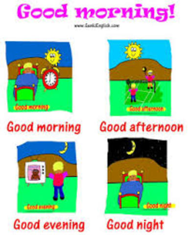 Greetings By Nancita22 1 CE Good morning You say Good morning from 5:00 a.m. to 11:59 a.m. 2 Good afternoon You say Good afternoon from 12:00 p,m, to 5:59 p.m. 3 Good evening You say Good evening from 6:00 p.m. to 5:00 a.m.