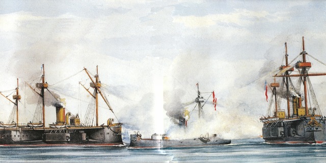 El 8 de octubre de 1879 se inició el feroz Combate de Angamos, al cabo de tres horas de lucha la escuadra Chilena capturó al Huascar muriendo Miguel Grau en tal enfrentamiento marítimo
