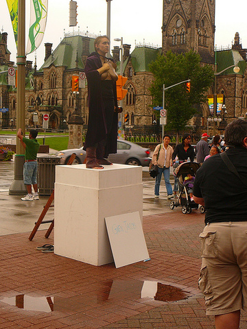 Nineteen-year-old Gwen Jacob is charged with indecency after walking topless through the city of Guelph. This was the second day she walked home topless during a very hot summer day. The police acted upon a complaint from a mother who was concerned that Jacob's act would have a negative impact on her children.