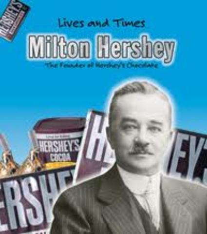Hershey Milton By lelalf Sep 13, 1857 Milton Hershey is born Nov 22, 1872 Milton is apprenticed to Joe Royer, candy maker Nov 22, 1882 Milton leaves philadelphia(business fails) travels to colorado where he learns the secret of using fresh milk to make caramels Nov 22, 1893 Milton travels to Colmbian Expotions and begins prosucing baking chocolate,cocoa, and sweet chocolate coatings for caramel Nov 22, 1894 milton founds the hershey chocolate company and begins producing baking chocolate,cocoa,and sweet chocolate coatinge for caramels Nov 22, 1905 the hershey chocolate company is completed Nov 22, 1906 the town of Hershey is officially named Nov 22, 1907 hershey kisses are introduced Nov 22, 1918 Milton gives his fortune to H.I.S (Hershey Industrial school) Nov 23, 1945 October 13 Mr.Hershey dies.He is 88