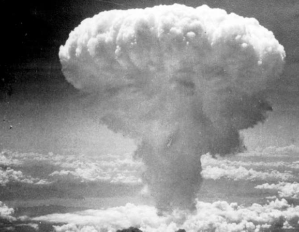 -Huge cloud of smoke and black rain hung over Hiroshima.