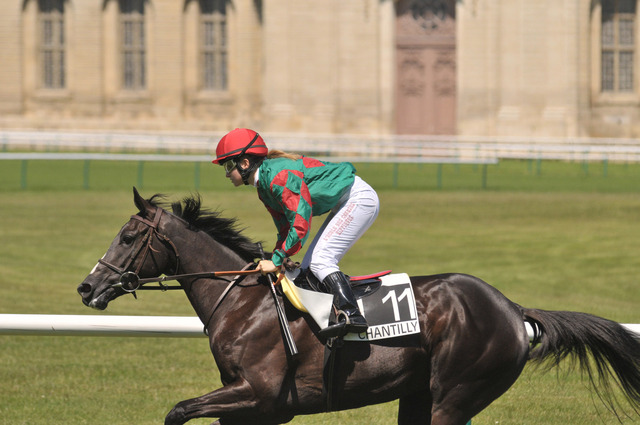 La cavalière Darie Boutboul remporte le Prix de la Plaisance, course support du Tiercé sur Abdonski à l'hippodrome de Longchamp.
