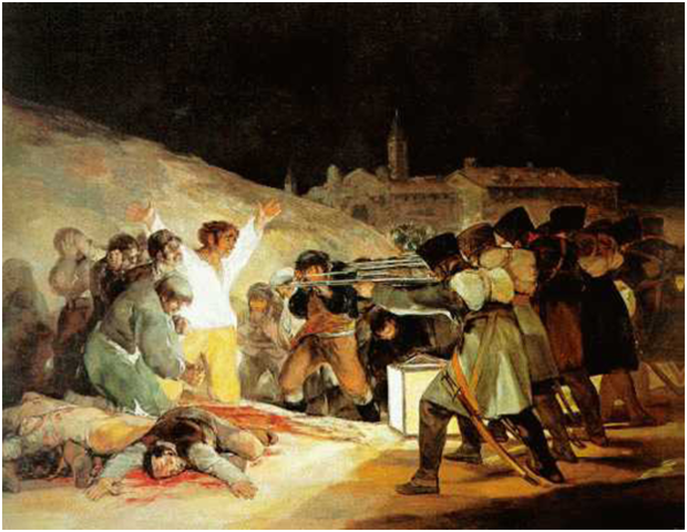 Un dia després de que començés la guerra del francès, es van fer els afusellaments de la matinada del 3 de maig, on afusellaven els presoners espanyols que havien fet durant el transcurs de la batalla en represàlia a la revolta del 2 de maig durant la Guerra de la Independència Espanyola.