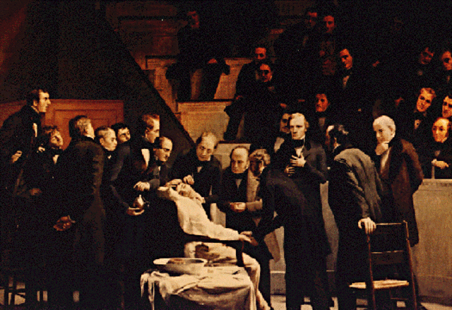 Em 1842, o Dr. Long utilizou pela primeira vez a anestesia pelo éter, Começaram porém a circular pela cidade rumores de que o médico estava pondo em risco a vida dos doentes, de maneira que, um dia, uma comissão constituída pelas autoridades locais foi ao seu consultório pedir para ele renunciar a essas práticas audaciosas.