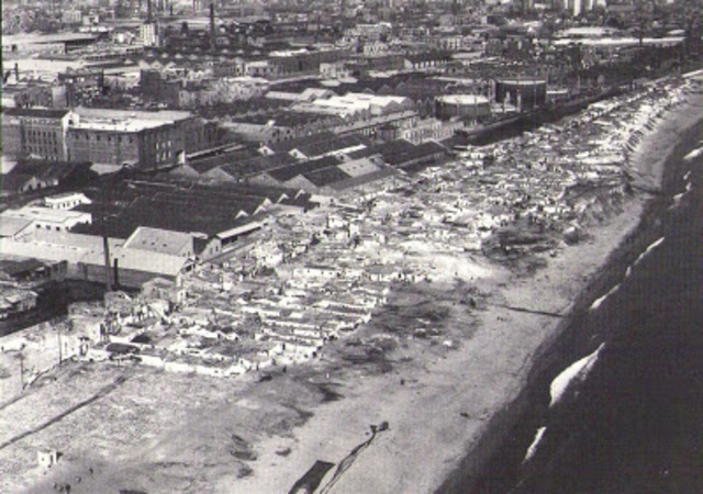 destruccion de casas y objetivos en el puerto y en las instalaciones industriales -- el barraquismo aparece como solucion a la desalojamiento, y surgen barrios pobres de pescadores y marineros trabajadores