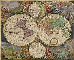 ABRAHAM ORTELIUS. MAPA-MUNDI DEL ATLAS EDITADO A PARTIR DE LOS CONOCIMIENTOS DE PTOLOMEO, Y DEL ORBIS TERRARUM ROMANO, PERO CON UNA VISIÓN MÁS DETALLISTA DEL SABER DEL SIGLO XVI.