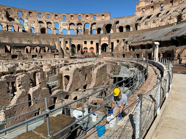 Los materiales utilizados en la construcción de este son bloques de travertino, hormigón, madera, ladrillo, piedra (toba), mármol y estuco. En la antigüedad poseía un aforo para unos 65 000 espectadores, con ochenta filas de gradas. -