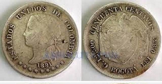 El peso ha sido la moneda colombiana desde 1810. En 1837 el peso reemplazó al real a una tasa de cambio de 1 peso = 8 reales, estando dividido inicialmente en 8 reales