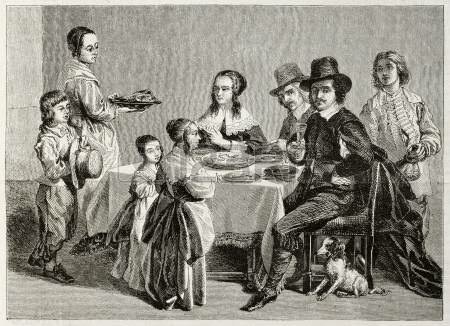 Rue de Poulies de París regentado por el mesonero Boulanger sopas y pies de cordero con salsa -