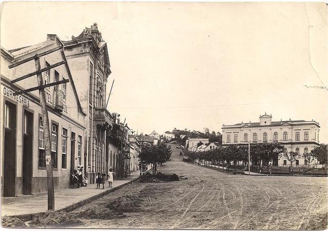 A fotografia representa o edifício na década de 1910. Em frente o princípio da Praça Marechal Deodoro. -