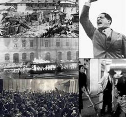 El asesinato de Gaitán detonó en la ciudad una escalada de hechos de violencia en una población que ya estaba reprimida, por lo que comenzaron saqueos, destrucción de la propiedad pública y privada, incluyendo transportes y edificios, y la consiguiente represión gubernamental. Destaca el incendio del tranvía de Bogotá, una de las primeras propiedades públicas en ser destruidas. El caos se incrementó debido a que parte de las fuerzas de seguridad se unieron a las acciones violentas.
