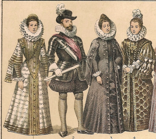 El vestido, el talle, vuelve a marcar la cintura , las mangas se van abullonando(mangas,gigot y beret). Se vuelve a utilizar el corsé, numerosas enaguas, posteriormente miriñaques. La monarca lucía exquisitas joyas destacando la diadema de diamantes.