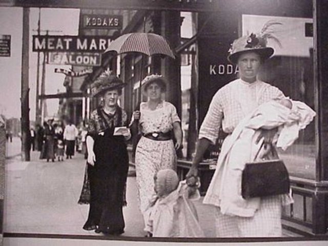 In the 1900’s women used to wear long dressed with a big hat with lots of designs on it. They wore a corset under their long dresses and the corset pulls their waists in to make their figure more curvy. They still had umbrella’s in the 1900’s as we do now.