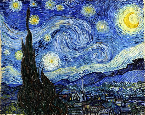 Self-Portrait with a Straw Hat was painted by Vincent van Gogh in 1887. His use of color and technique, such as bright, unnatural colors and thick paint application, is characteristic of the Post Impressionism period.