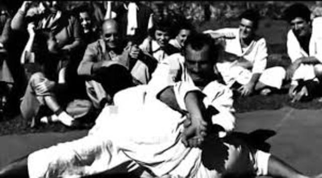 MAEDA USED JIU JITSU AS A TOOL TO TEACH THE YOUNG CARLOS VALUES LIKE SELF CONTROL, DISCIPLINE AND RESPECT. IN 1925 CARLOS SETTLED IN RIO DE JANEIRO, WHERE HE OPENED ACADEMIA GRACIE DE JIU JITSU. CARLOS BEGAN TO TEACH THE ART TO HIS YOUNGER BROTHERS OSWALDO, GASTAO, GEORGE, AND HELIO AS WELL AS DEVELOPING A PHILOSOPHY A THE GRACIE FAMILY BEGAN TO GROW, AND THE BROTHERS BEGAN TO CHALLENGE OTHER FIGHTERS TO NO-HOLDS- BARRED FIGHTS TO PROVE THE EFFECTIVENESS OF JIU JITSU
