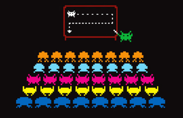 Shooting game where the players defeat waves of aliens with a laser cannon to earn as many points as possible.