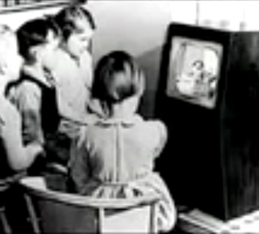 Was around the first time that televisions and toured peoples homes. So that they could watch the news and didn’t have to go anywhere to see it.