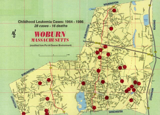 Doctor Truman is contacted by Reverend Young who presents him with a map informing him on the amount of leukemia cases that have occurred in east Woburn. Truman asks Dr. Clark Heath from CDC to help in investigating these leukemia clusters in Woburn. This then leads to the city obtaining help from the CDC and the Massachusetts Department of Health, whom interviewed both the families of each leukemia-affected child and families that were similar to them but not affected by leukemia.