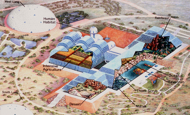 Space Biospheres Ventures bought the property in 1984 and began construction of the current facility in 1986 to research and develop self-sustaining space-colonization technology.