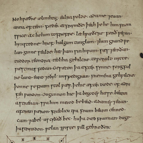 The Anglo-Saxons and Their LanguageThe Old English language descends from West Germanic dialects, which in turn descended from Proto-Germanic, leading us closer to Proto Indo-European. The language possessed grammatical gender, noun declensions more complex than Modern English, and other featuers which do not exist in Modern English. This language is not immediately recognizable as a form of English to any speakers today.