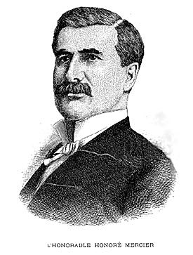 Honoré Mercier By Mayadavid 1840 La naissance d’Honoré Mercier 1862 Il néglige ses études et accepte de succéder à Raphaël-Ernest Fontaine à la rédaction du courrier de Saint-Hyacinthe 1865 Mercier devient avocat 1871 Mercier collabore afin de créer le parti national 1871 Mercier ce fait élire à la chambre des communes 1872 Mercier fait son premier discours Sep 17, 1878 Il se présente aux élections fédérales, mais se fait battre de justesse 1883 Nommé chef du parti libéral provincial 1885 Discours de Mercier sur les champs de Mars Jan 27, 1887 Mercier est assermenté premier ministre Oct 28, 1887 Mercier organise la première conférence interprovincial 1894 Mort de Mercier