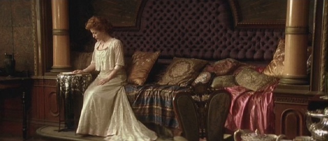 Lily is invited to a party where she, along with some other women, are basically supposed to put themselves on display for men to look at. Lily loves it. Selden in particular takes notice of how beautiful Lily is. He takes her outside with him, confesses his love for her, and they kiss. But Lily's nerves seem to suddenly get the better of her, for she pulls away and says he can love her, but he shouldn't tell her so. Meanwhile, Mr. Trenor is mad that Lily put herself on display for other men.