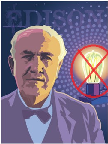 Edison, frustataed because he couldn't invent the light bulb, writte a letter, lighting the room with candles, and nothing but frustation in his face