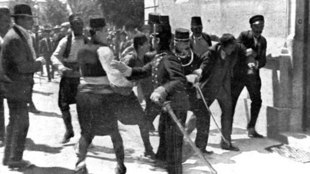 El 28 de junio de 1914, el archiduque Francisco Fernando, heredero de la corona austríaca y su mujer, Sofía Chotek, son asesinado por el nacionalista serbio Gavrilo Princip. -