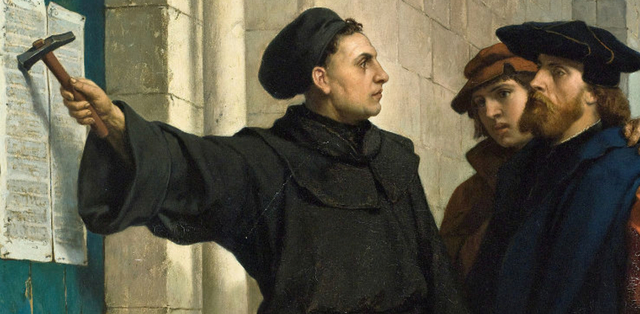 Nel 1483 a Sassonia, nasce Martin Lutero, fondatore di una nuova religione, quella protestante. Il 31 Ottobre del 1517, Martin Lutero, al di fuori della chiesa di Wittemberg attacca al muro con un martello le cosiddette 95 tesi, che sono delle affermazione che criticavano la chiesa e la religione di quel tempo.