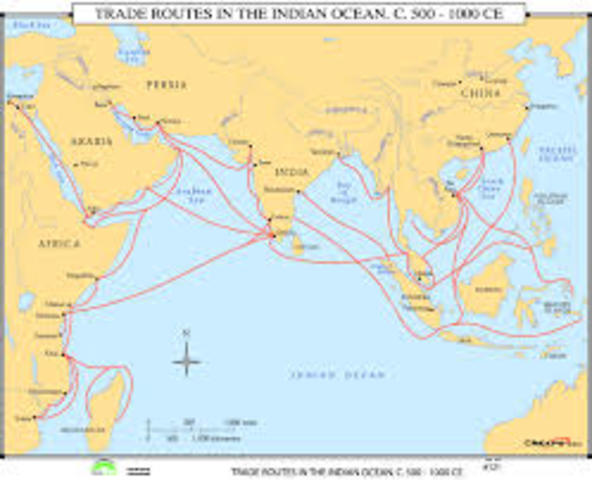 Three different trade routes during this time period, The Silk Road, the trade across the Indian Ocean, and Saharan trade.