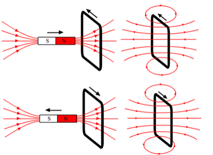 Considera una bobina conectada a un galvanómetro (amperímetro sensible) y mantenla en reposo. Al aproximar o alejar el polo norte de un imán a la bobina, el galvanómetro detecta el paso de una corriente eléctrica.