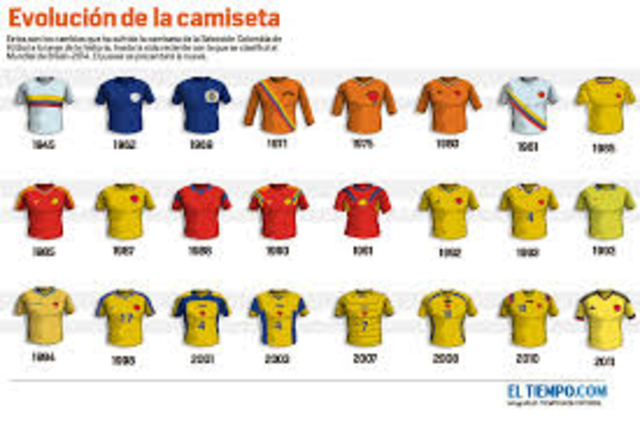 Esta fue la primera camiseta que utilizo la selección Colombia. Esta fue implementada para jugar nuestra primera Copa America donde nos represento el Junior de Barranquilla, para esas épocas el capitán era Ricardo Granados.