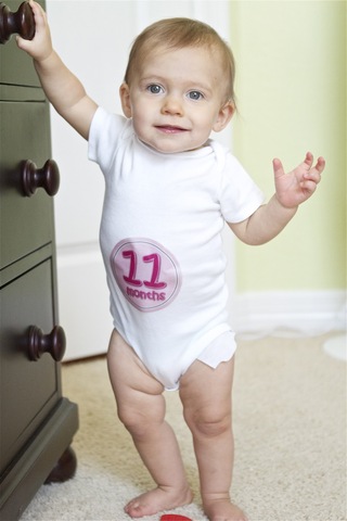 sits alone, may try to crawl up stairs, may be able to move along furniture, touchingit for suppport, uses index finger to point, lead, and poke