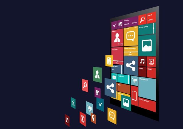 El cambio más visible. Una nueva colorida interfaz encima del escritorio clásico. Esta pantalla es el método primario para abrir apps, sitios web e información de redes sociales con las apps adecuadas. Los iconos pueden ser rectangulares o cuadrados, grandes y pequeños; agrupados y mostrar notificaciones.