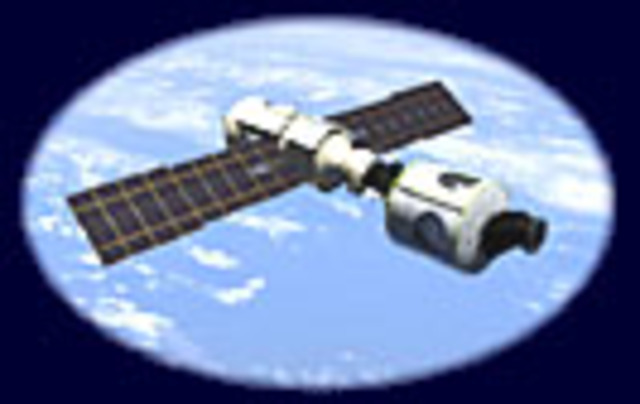 U.S. orbiter attached to russian control module in space.